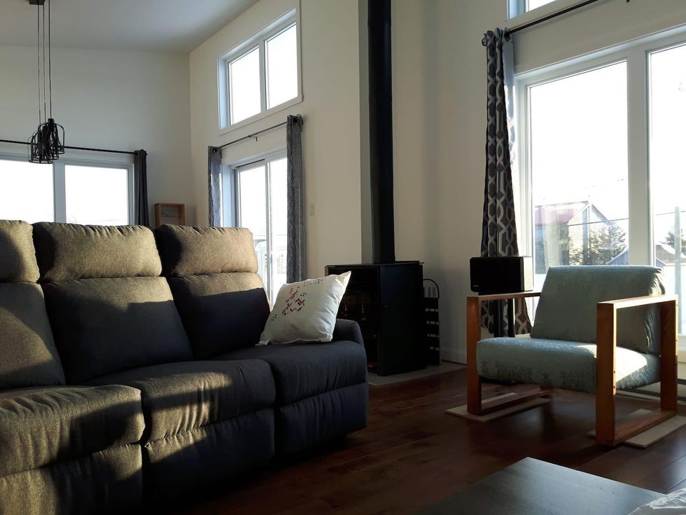 Pourquoi tu dois booker : Cette maison champêtre avec de grandes fenêtres donne sur une vue absolument splendide du fleuve Saint-Laurent. De plus, le terrain arrière et la forêt sont accessibles si tu as envie d'aller faire une randonnée. La demeure avec sa grande fenestration et ses jolies couleurs chaudes sauront grandement te ravir.