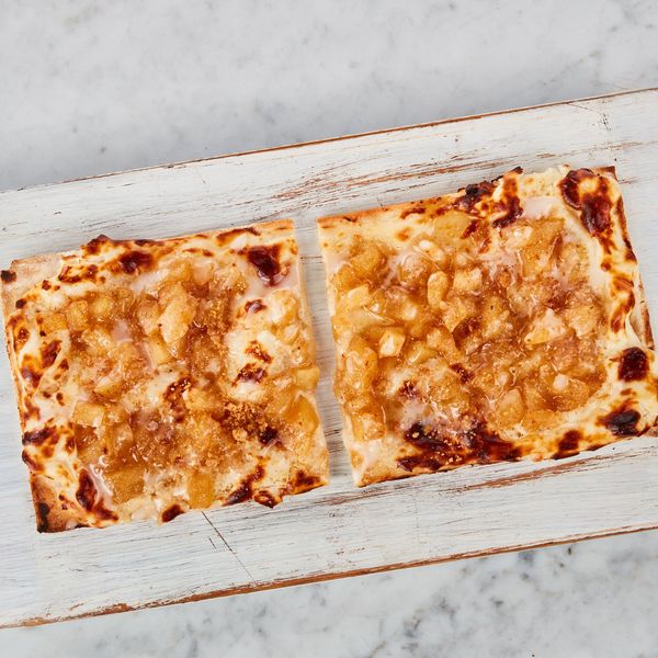 Pour clôturer ta soirée en beauté, laisse-toi tenter par la Tarti-flamm pomme caramélisée. Sa pâte fine croustillante, ses pommes délicatement parfumées à la cannelle, son fromage à la crème sucré et ses biscuits à l'avoine émiettés en font un dessert irrésistible.
