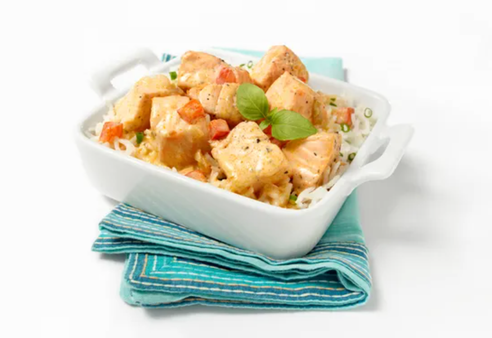 - Servir sur un lit de riz basmati et garnir de basilic.