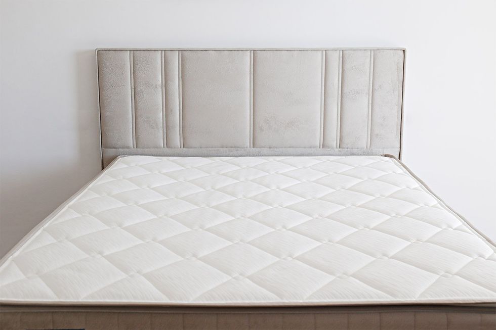 Lit propre et matelas confortable dans une chambre minimaliste.