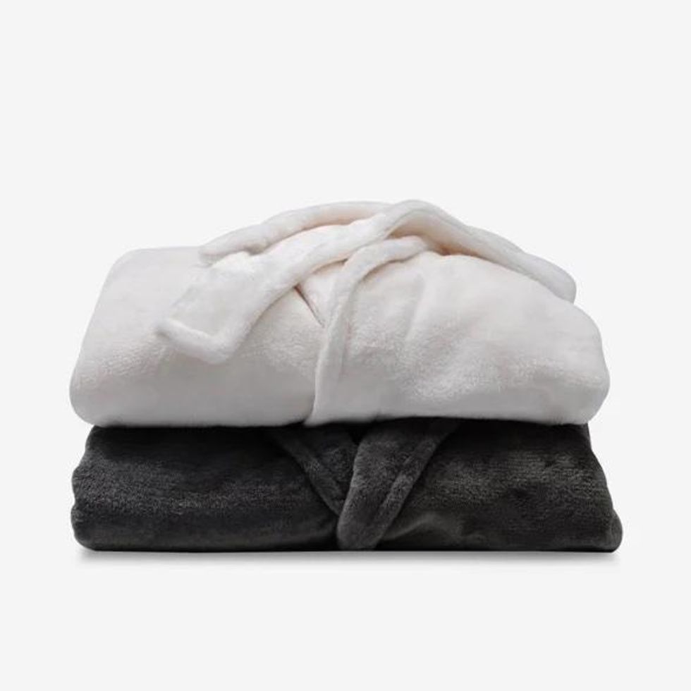 Disponible en blanc ou en gris foncé, il est parfait pour se détendre à la maison ou s’emitouffler avec un bon livre et une tasse de thé avant d’aller se coucher.