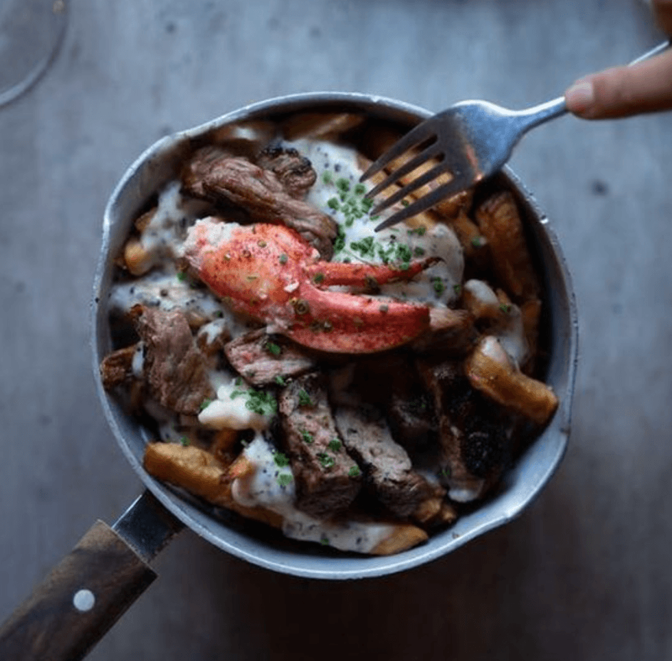 Pourquoi tu dois y goûter : Le chic restaurant du Vieux-Port de Montréal, Maison Saint-Paul, participe aussi à l'événement. Pour l'occasion, l'équipe a créé un plat gastronomique qui mélange filet mignon et homard nappé d'une délicieuse sauce Mornay à la truffe sur un lit de frites garni de fromage. Un Surf 'n' Turf réinventé.
