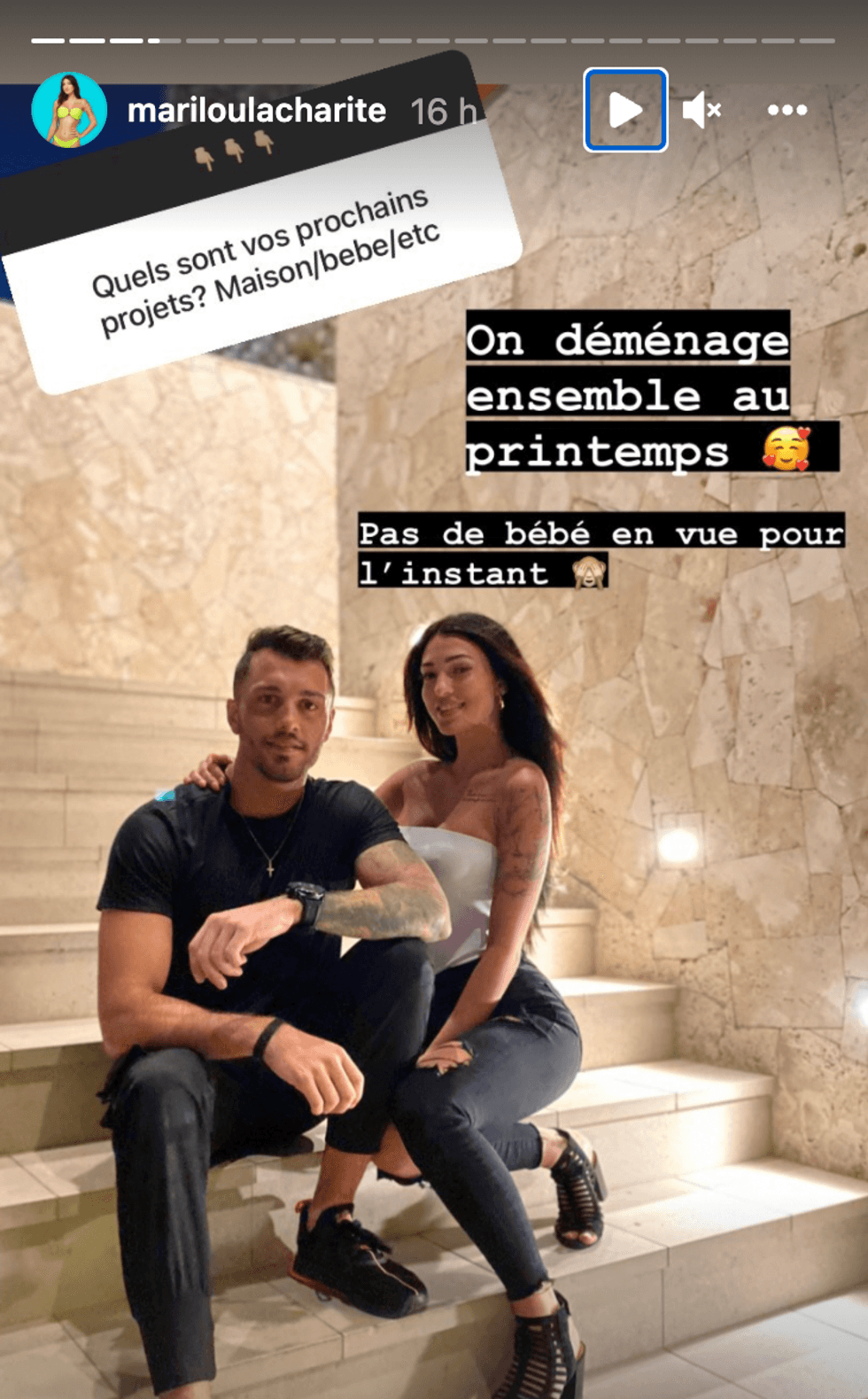 Ainsi, le dimanche de la finale d'OD, Marilou a publié une photo d'elle et Antoine en s'ouvrant sur leurs plans concernant leur situation d'habitation et le fait d'avoir des enfants :