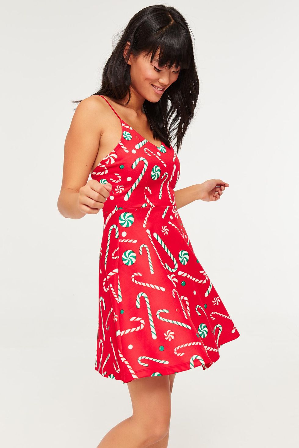 Détails : La robe parfaite pour ceux qui adorent la mode de Noël quétaine, mais ne veulent pas passer les Fêtes dans un pull de laine. Elle existe également en turquoise avec des motifs de flocons.