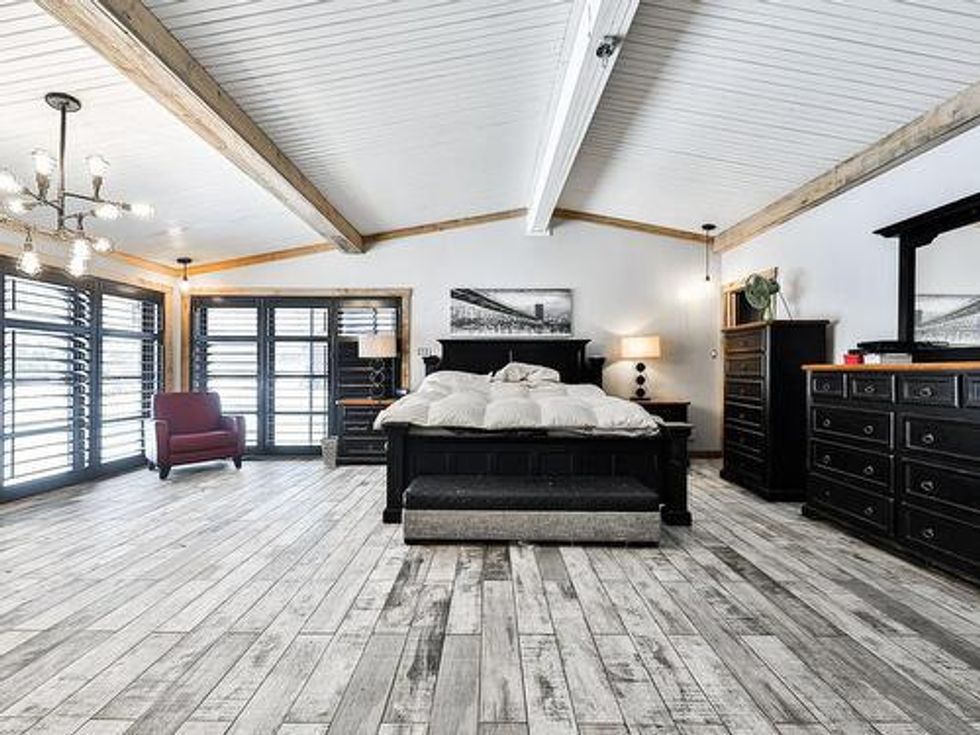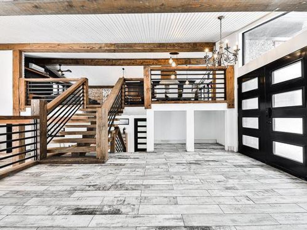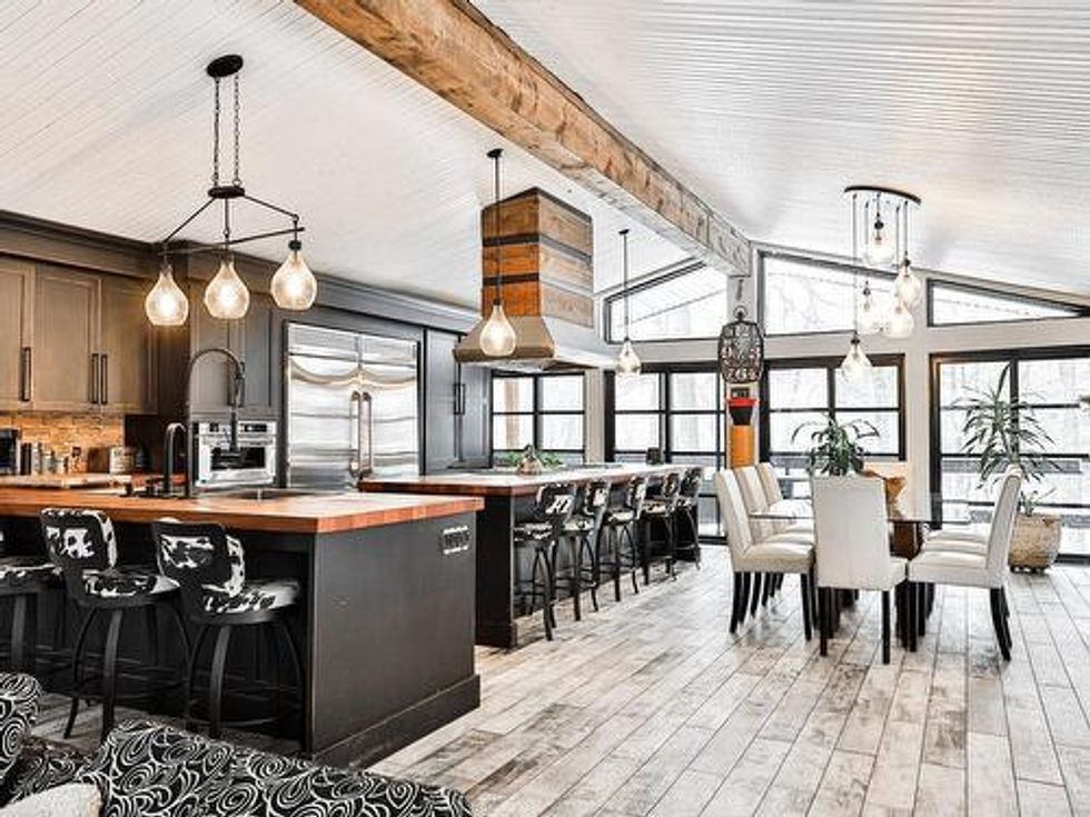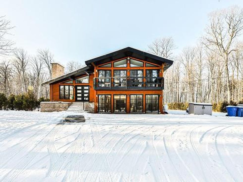 Être éloigné.e de la ville, surtout en hiver, permet d'admirer la nature dans toute sa splendeur. D'ailleurs, ce chalet aussi rustique que moderne à vendre à trente minutes de Montréal et quinze minutes de Laval offre l'occasion de vivre la chalet life, mais à l'année longue.