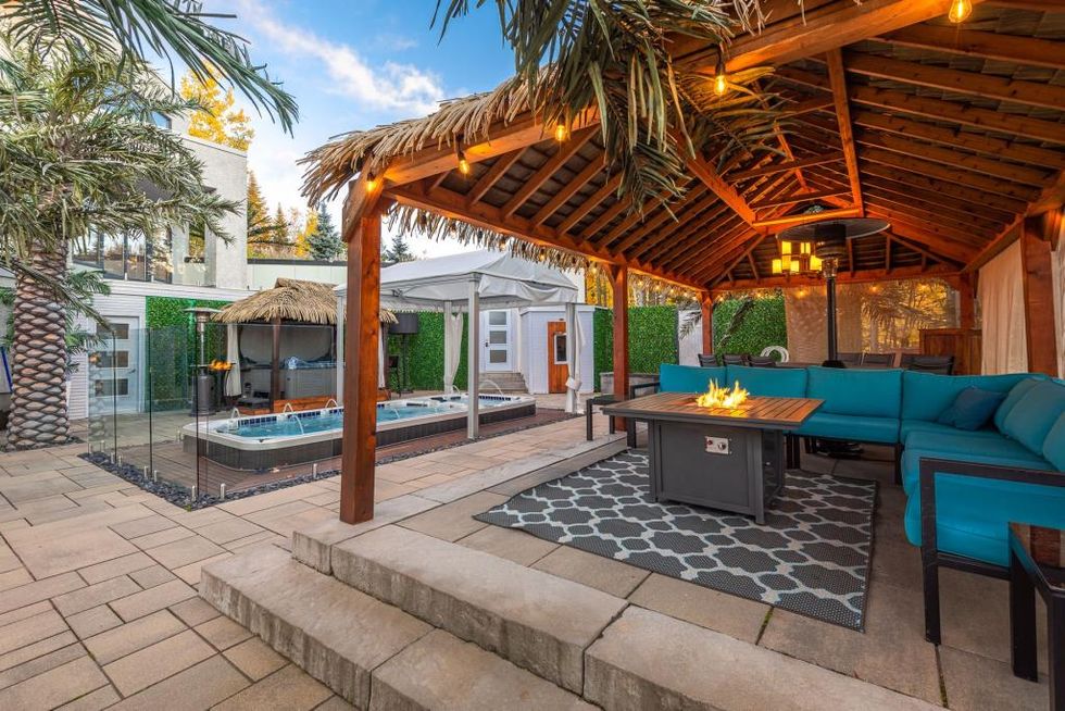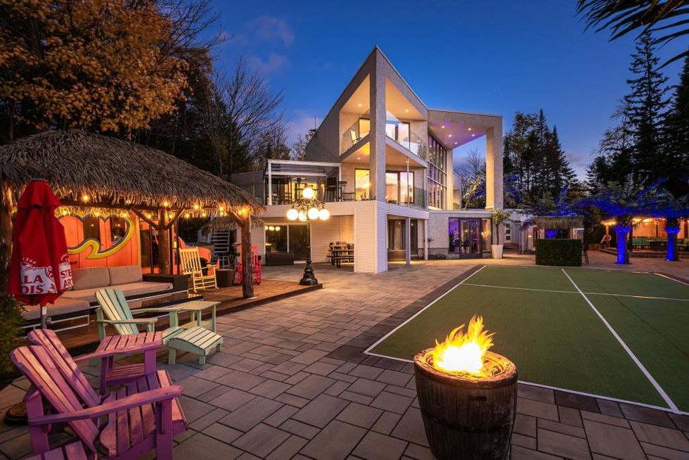 Cette maison avec un immense spa à Saint-Adèle est un paradis tropical l'été comme l'hiver