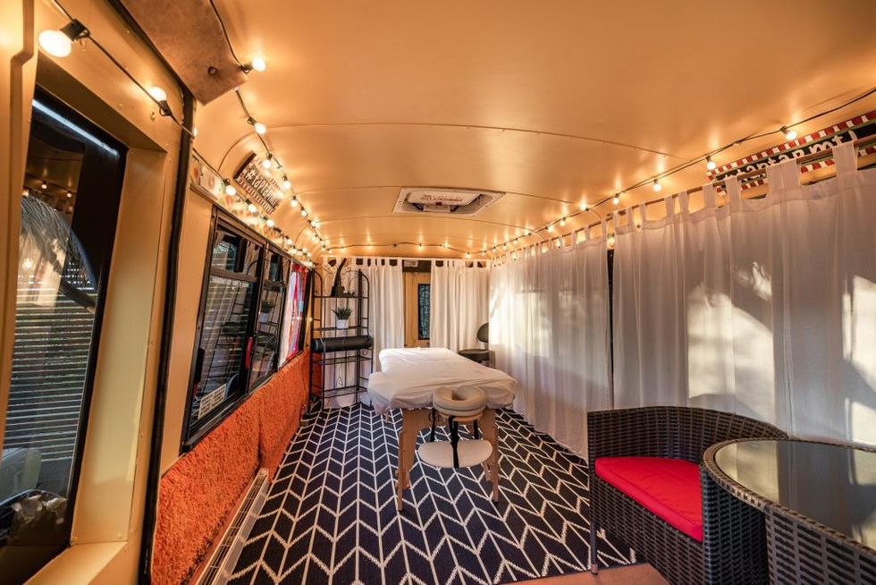 Ce coin de paradis est affiché à 1 375 000 $ et comprend même une station de massage dans un autobus installé à l'extérieur de la maison.