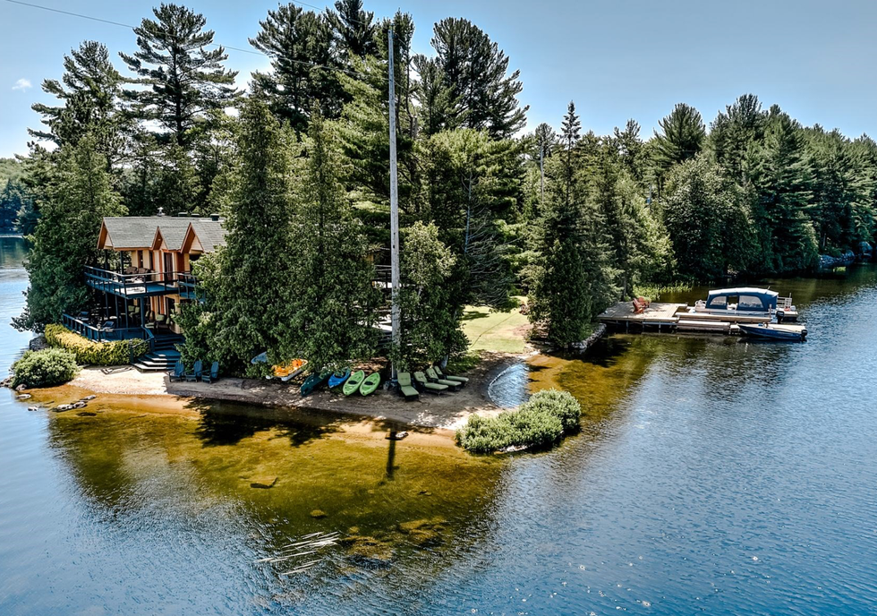 Ce chalet sur une île privée à 1h30 de Montréal est à vendre et c'est paradisiaque