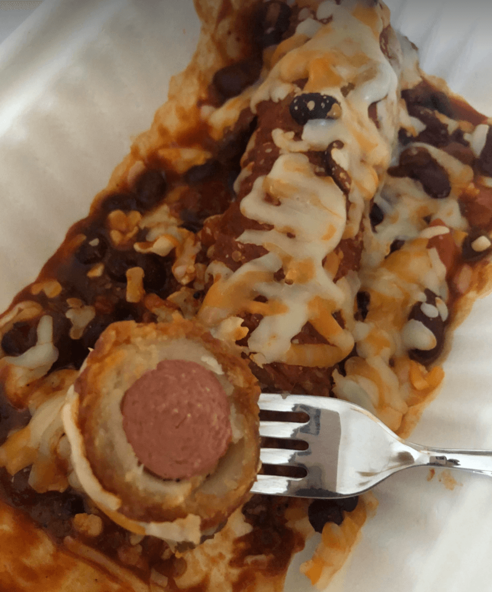 Au premier coup d’œil, le Chogo chili fromage est celui qui semble le plus appétissant, puisqu’il s’agit d’une saucisse, de pâte croustillante à churro sans sucre, le tout recouvert de chili et fromage fondu.