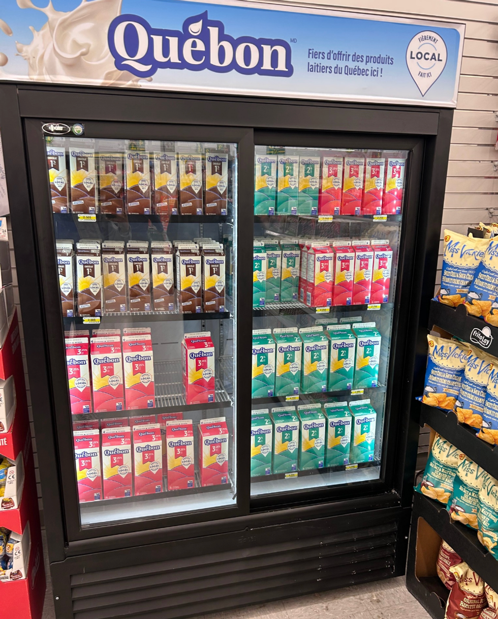 Après avoir introduit du lait de vache Grand Pré (UHT) en tablette, et même des congélateurs de crème glacée dans certaines succursales cette année, l'enseigne fait un pas de plus en testant la vente de lait réfrigéré dans l'un de ses magasins montréalais, à Côte-des-Neiges–Notre-Dame-de-Grâce, en début de mois.