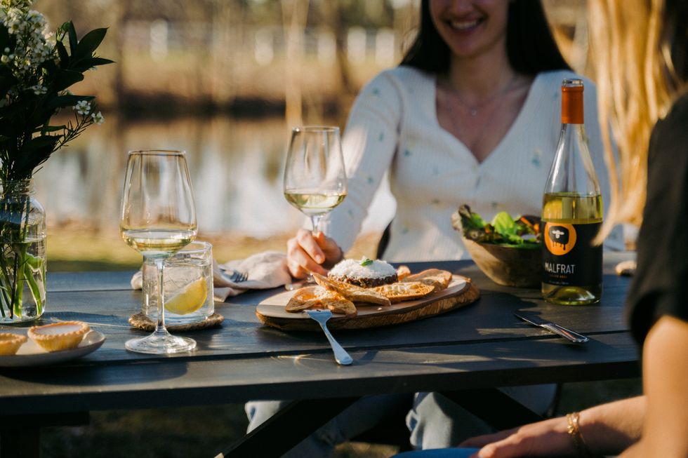 Tu pourras goûter à leur sélection tout en admirant les vignes depuis une grande terrasse au bord de la rivière.