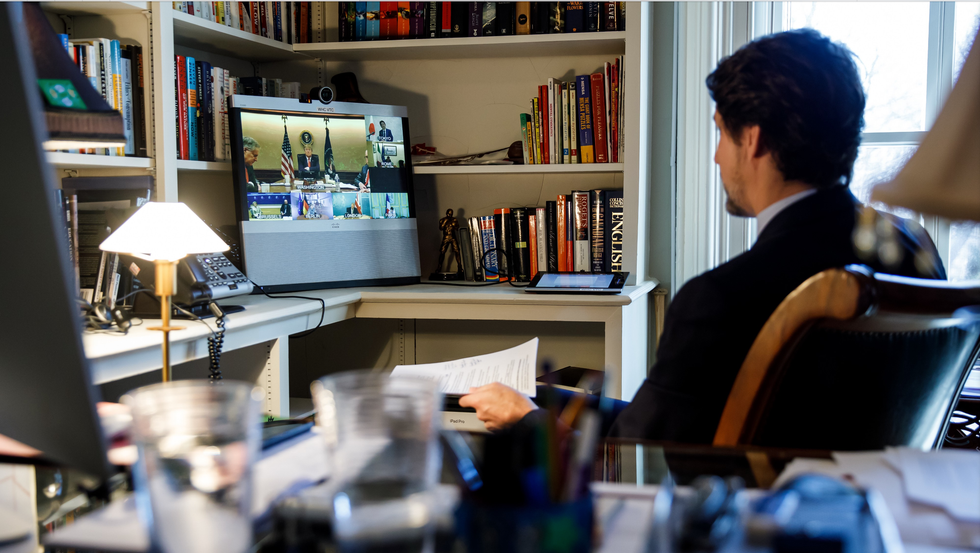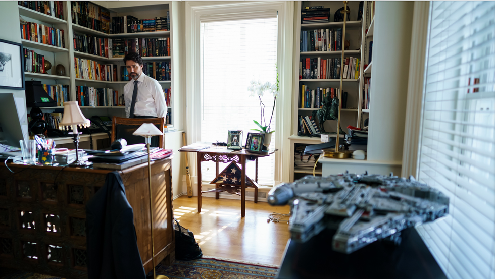 Tout comme la majorité des Canadiens cette année, Trudeau a passé beaucoup plus de temps à travailler à domicile qu'à son bureau gouvernemental. Son espace de travail est probablement un peu plus grand que ceux de la plupart des citoyens!
