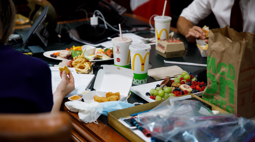 Les déjeuners entre amis et même en famille ne sont pas évidents à organiser cette année. Même Trudeau a sûrement dû composer avec la situation. On le voit d'ailleurs ici, seul, pendant une pause, dans le confort de la salle à manger de Rideau Cottage.