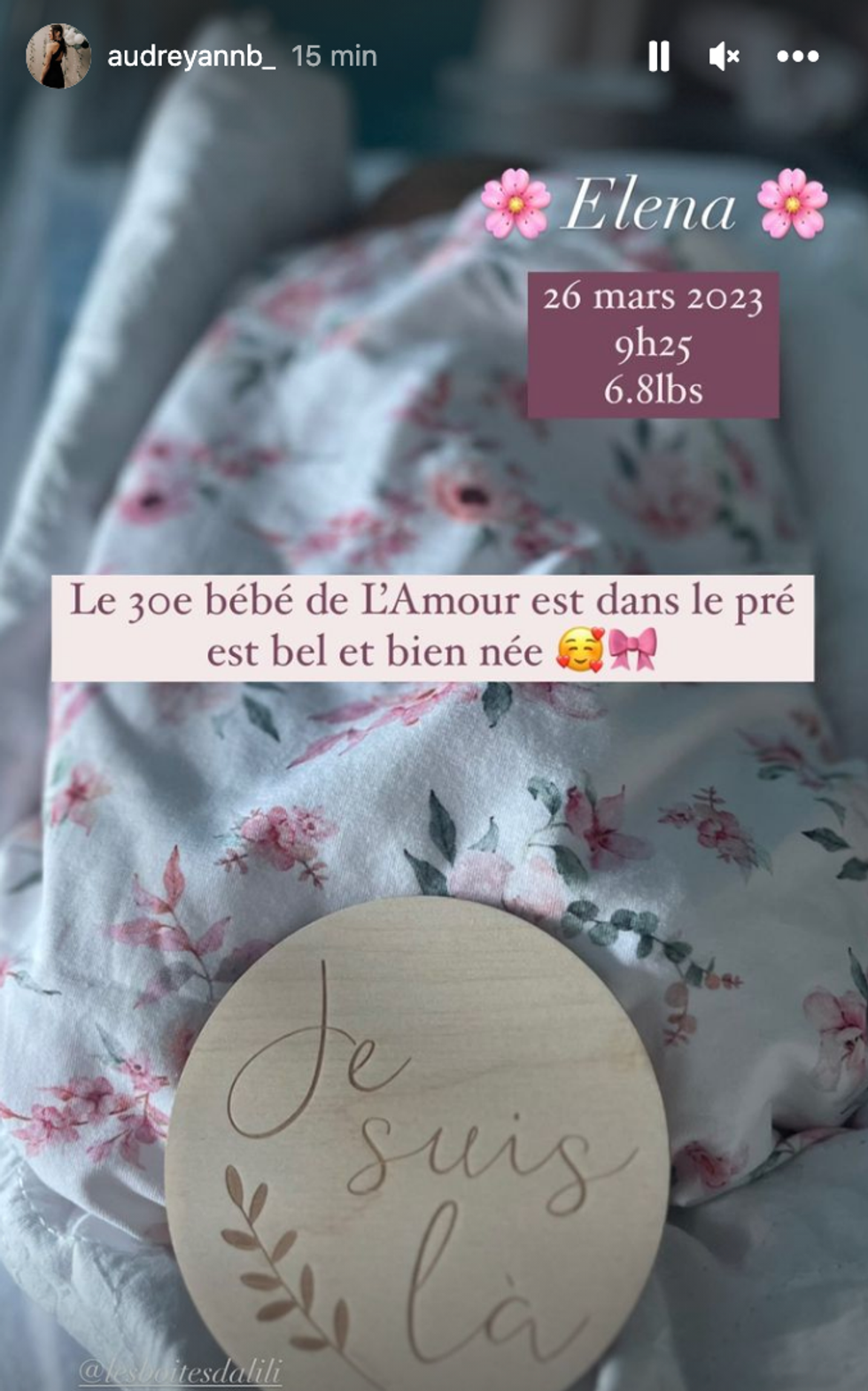 C'est dans une story sur Instagram que le couple qui a célébré ses trois ans d'amour à la fin de l'automne a annoncé la belle nouvelle le 30 mars en matinée. Selon Audreyann, sa fille Elena est née le dimanche 26 mars à 9 h 25, et elle pesait un petit 6.8 livres.
