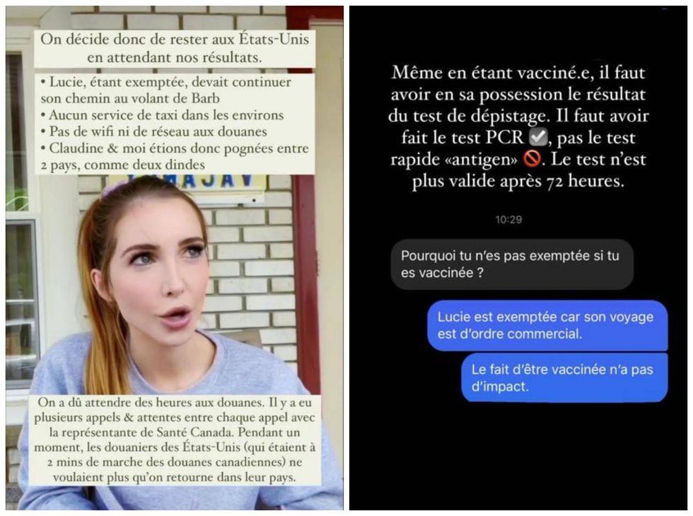 « Dimanche, on a fait un test de dépistage, on n'a pas le choix de faire le test dans le fond pour revenir au Canada, puis on devait avoir le résultat au plus tard mardi. On est arrivées aux douanes le mardi soir [...] quand on s'est connectées pour voir sur notre portail, on n'avait pas encore reçu les tests. »