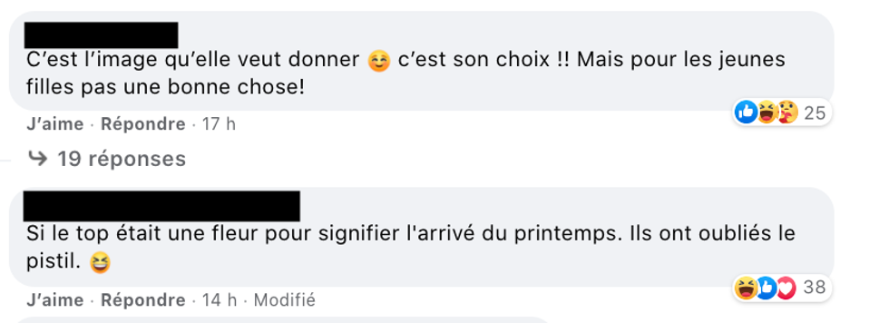 Chez les humoristes, on pense à Arnaud Soly qui a comparé le haut à un beigne, ou à Christine Morency qui a recréé le look à la blague.