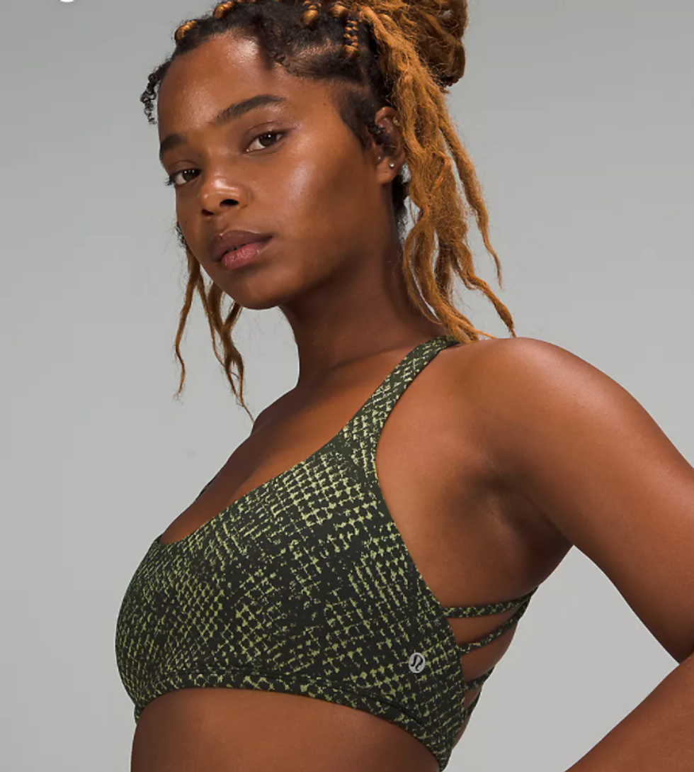 Détails : Un soutien-gorge de sport à motif imitation reptile qui a de la gueule. On aime les détails de laçage dans le dos. Il apporte un soutien léger et convient donc mieux aux petites poitrines.