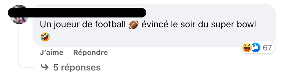 Avec une touche d'humour, des fans ont également souligné le fait que c'est le joueur de football qui a été éliminé le jour même du Super Bowl.