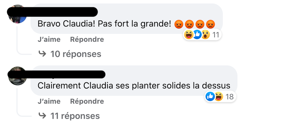 « Bravo Claudia! Pas fort la grande! », peut-on lire. Tout comme « Clairement Claudia s'est plantée solide là-dessus. »