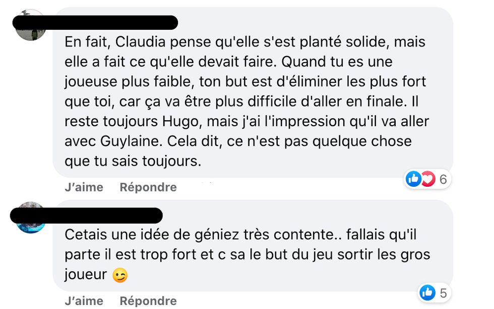 Quelques personnes sont par contre d'avis que ce choix pourrait être bénéfique pour la suite de sa game, en soulignant que Marc-Antoine représentait une menace de taille pour la fin de la compétition.