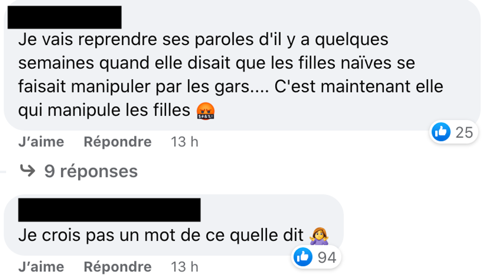 Une intervention affirmant qu'un.e internaute ne « croit pas un mot de ce qu'elle dit », s'est même attiré 94 réactions.