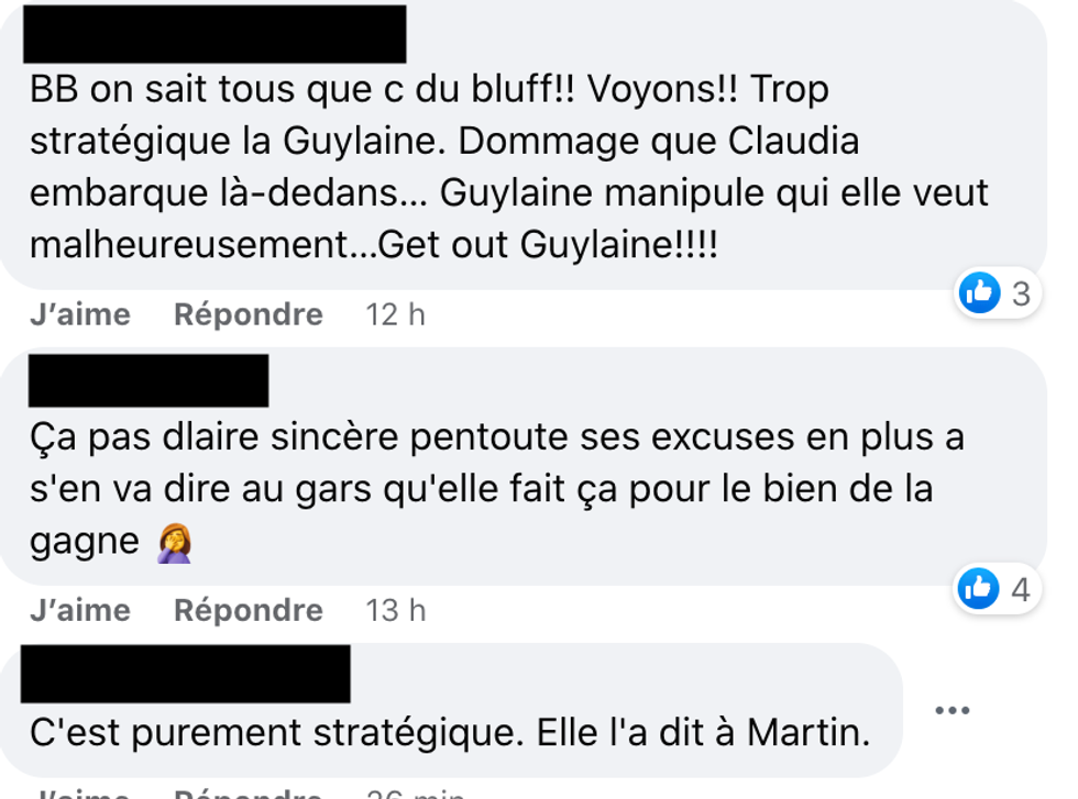 « BB on sait tous que c'est du bluff! Voyons! Trop stratégique Guylaine. Dommage que Claudia embarque là-dedans […]. »