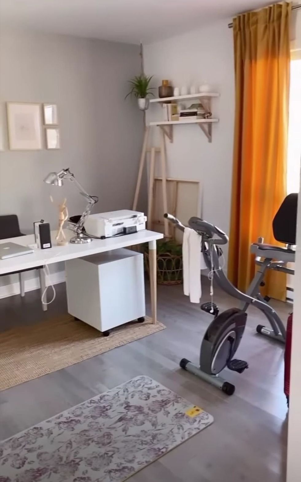Dans l'une des chambres, elle a aménagé une pièce multifonction qui lui sert de bureau, de salle d'entraînement et pour tout autre loisir.