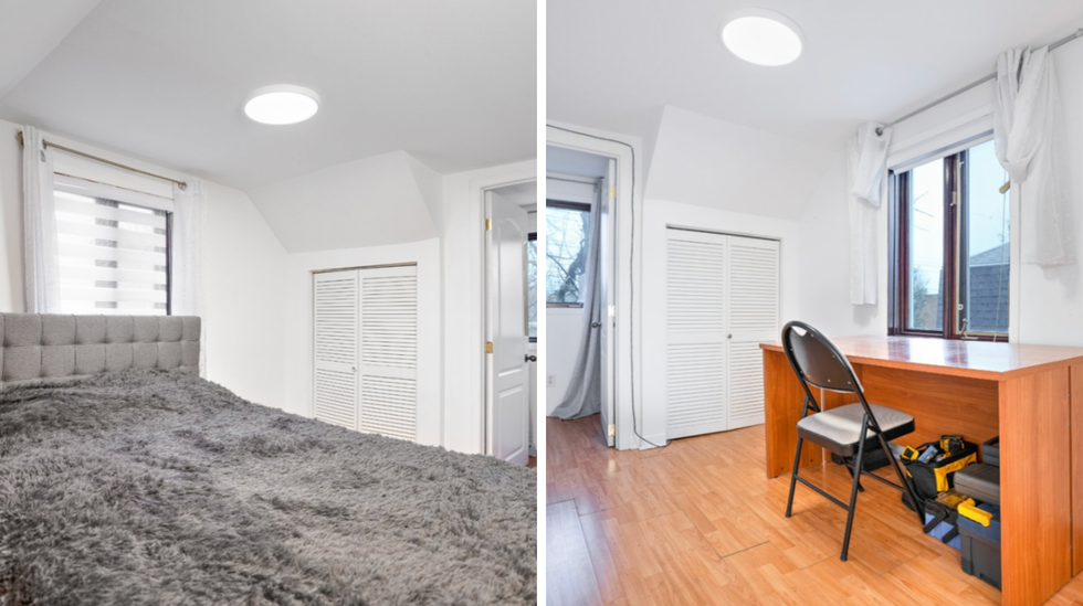 L'étage est formé de deux chambres, dont une qui a été utilisée comme un bureau par l'actuel propriétaire, mais tu pourrais très bien en faire un dressing, une salle de sport ou encore une chambre pour enfant.