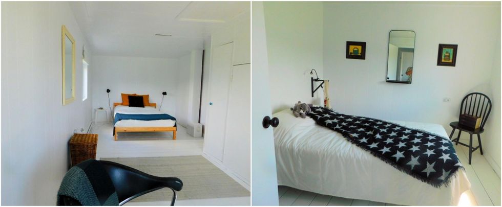Pour ce qui est des chambres, elles sont toutes regroupées au second niveau. Avec leurs planchers de bois peints en blanc qui s'accordent parfaitement aux murs, c'est une vision de paradis qu'elles offrent. La chambre principale est faite sur le long et peut faire une petite suite en ajoutant un coin salon et les deux autres sont plus cozy, mais tout aussi charmantes.