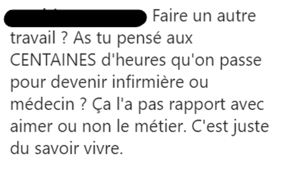 Celle-ci a également été partagée sur la nouvelle page qui fait jaser, @cancel.influenceurs, et dans le message en question, l'infirmière explique à l'influenceuse son sentiment d'impuissance alors qu'elle soigne quotidiennement des personnes n'ayant pas respecté les mesures.
