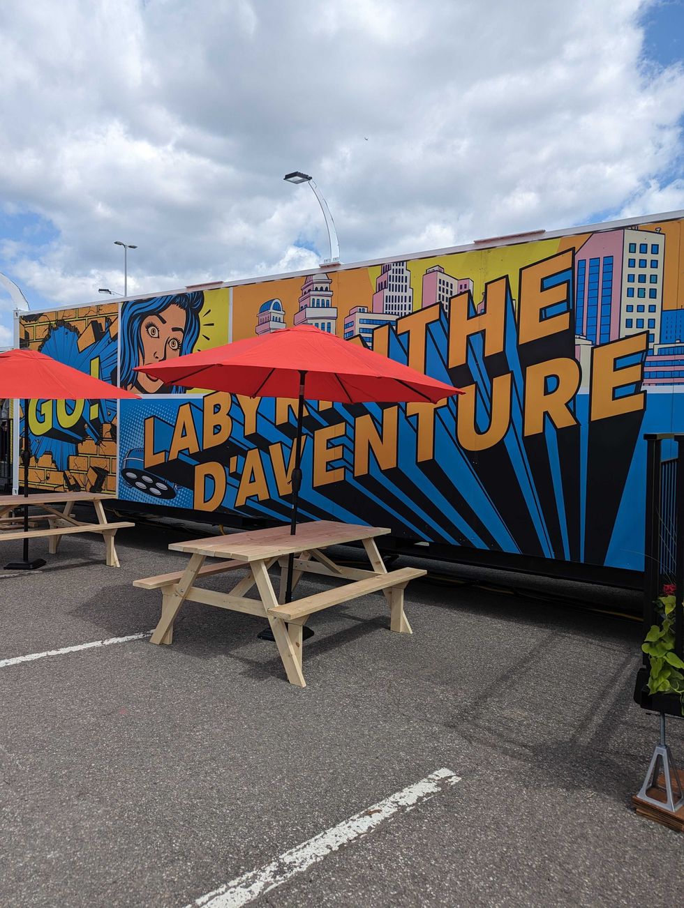 Le lieu est accessible via le stationnement de CF Carrefour Laval, au coin des boulevards Daniel-Johnson et Le Carrefour. Le parcours de l'activité est délimité grâce à des conteneurs recyclés à l'entrée et la sortie du site. Il a été conceptualisé par Acmé Décors.