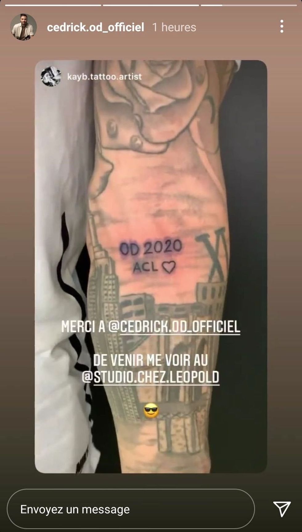 Le 19 novembre, le studio de tatouage privé Chez Léopold a partagé une story Instagram montrant le nouveau tatouage de Cédrick, qui se compose des inscriptions « OD 2020 » ainsi que les initiales « ACL » en dessous, suivis d'un cœur.