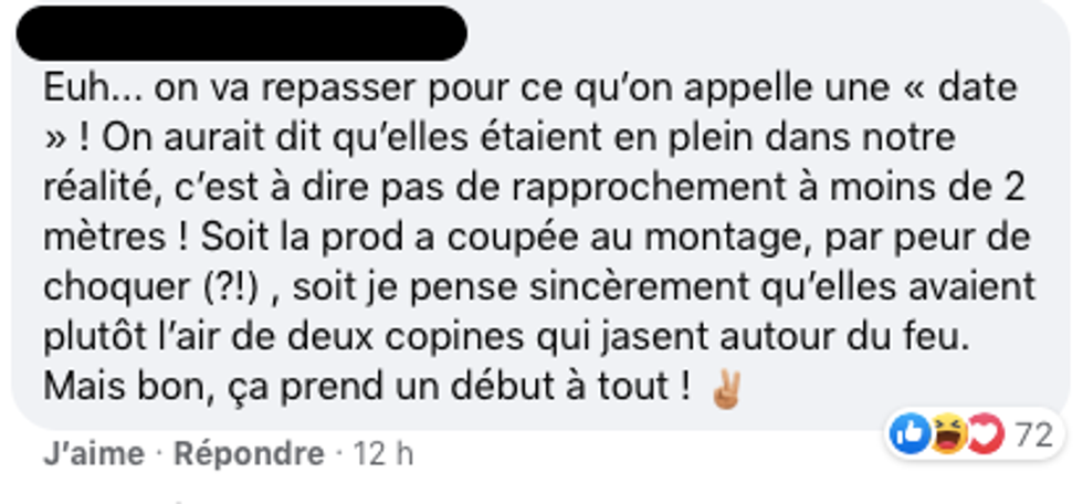 Sur Facebook, plusieurs ont remarqué la distance entre les deux candidates, qui étaient chacune sur leur divan, et trouvaient la date « forcée ».