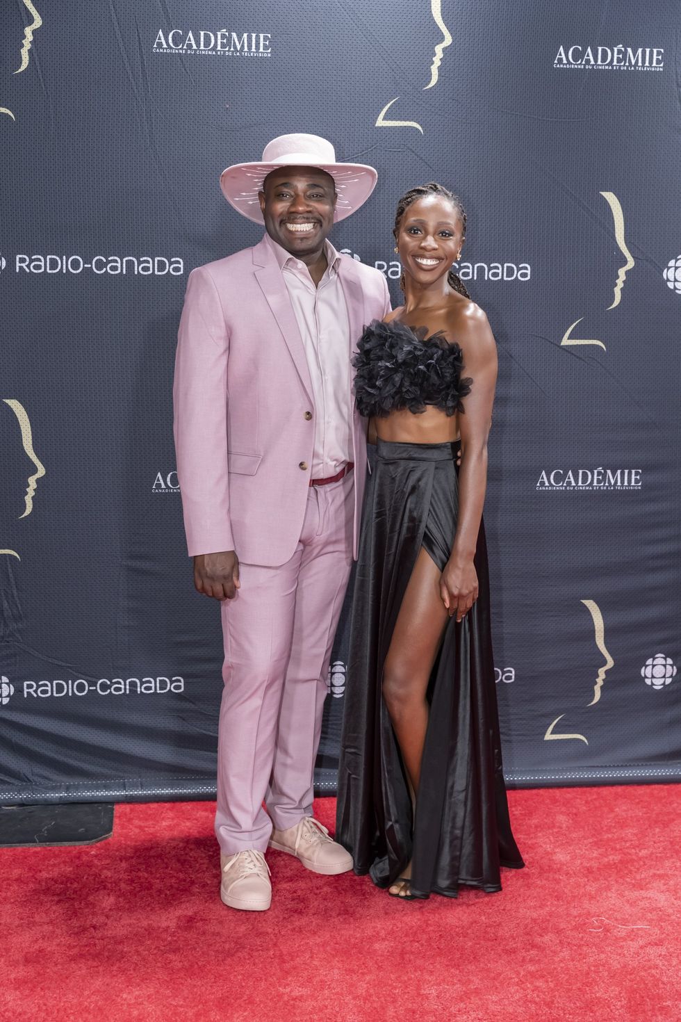 Rosalie Vaillancourt aux prix Gémeaux 2023. Droite : Richardson Zéphir et sa conjointe aux prix Gémeaux 2023.