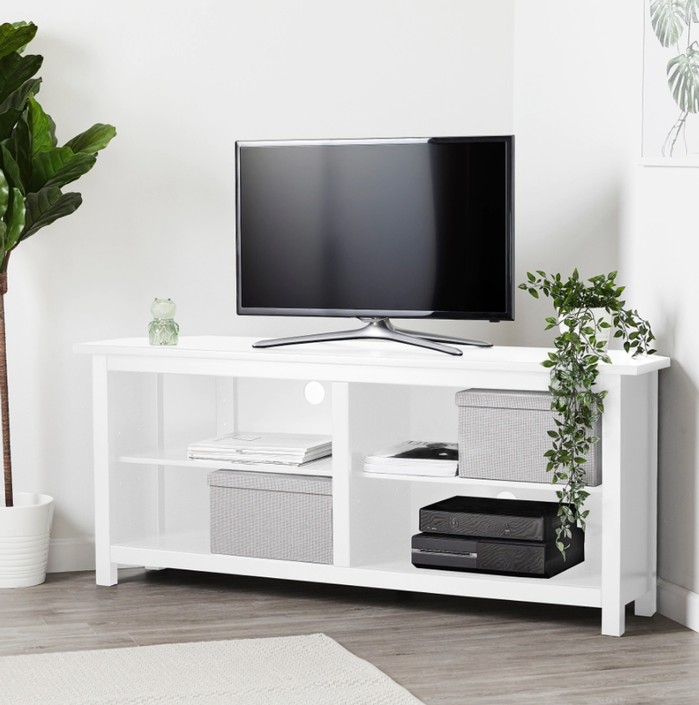 Détails : Si un meuble de télé peut sembler une dépense « plate », ça vaut quand même la peine de sauver 100 $ à l'achat. Il est assez grand pour ranger tous tes jeux vidéo, et il vient en deux couleurs : blanc et brun-noir.