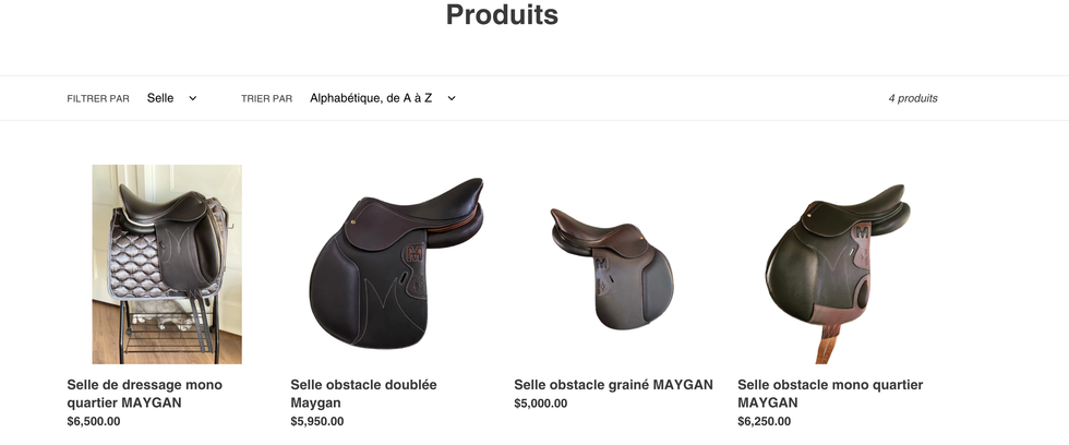 En fouillant sur le site Internet de Ma sellerie Maygan, on peut effectivement voir que les prix des selles varient entre 5 000 et 6 500 $. La plus dispendieuse est la selle de dressage mono quartier MAYGAN.